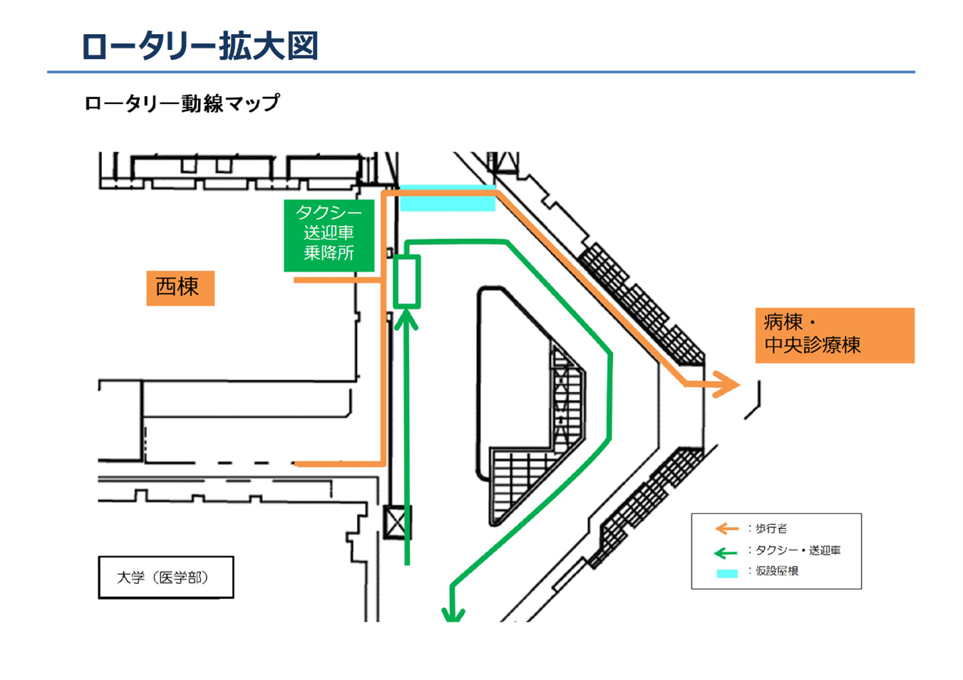 北側出入口から外来診療棟までの動線は変更ありません。詳しくは下図をご覧ください。
