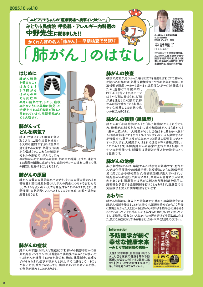 vol.10 かくれんぼの名人「肺がん」―早期検査で見抜け「肺がん」のはなし【呼吸器・アレルギー内科 中野 暁子】