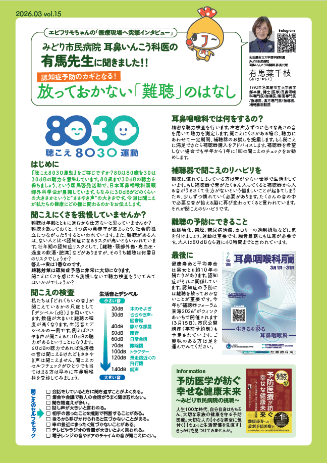 - vol.15 認知症予防のカギとなる! 放っておかない「難聴」のはなし【耳鼻いんこう科 有馬 菜千枝】