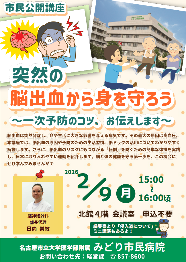 講演内容:突然の脳出血から身を守ろう~一次予防のコツ、お伝えします~
