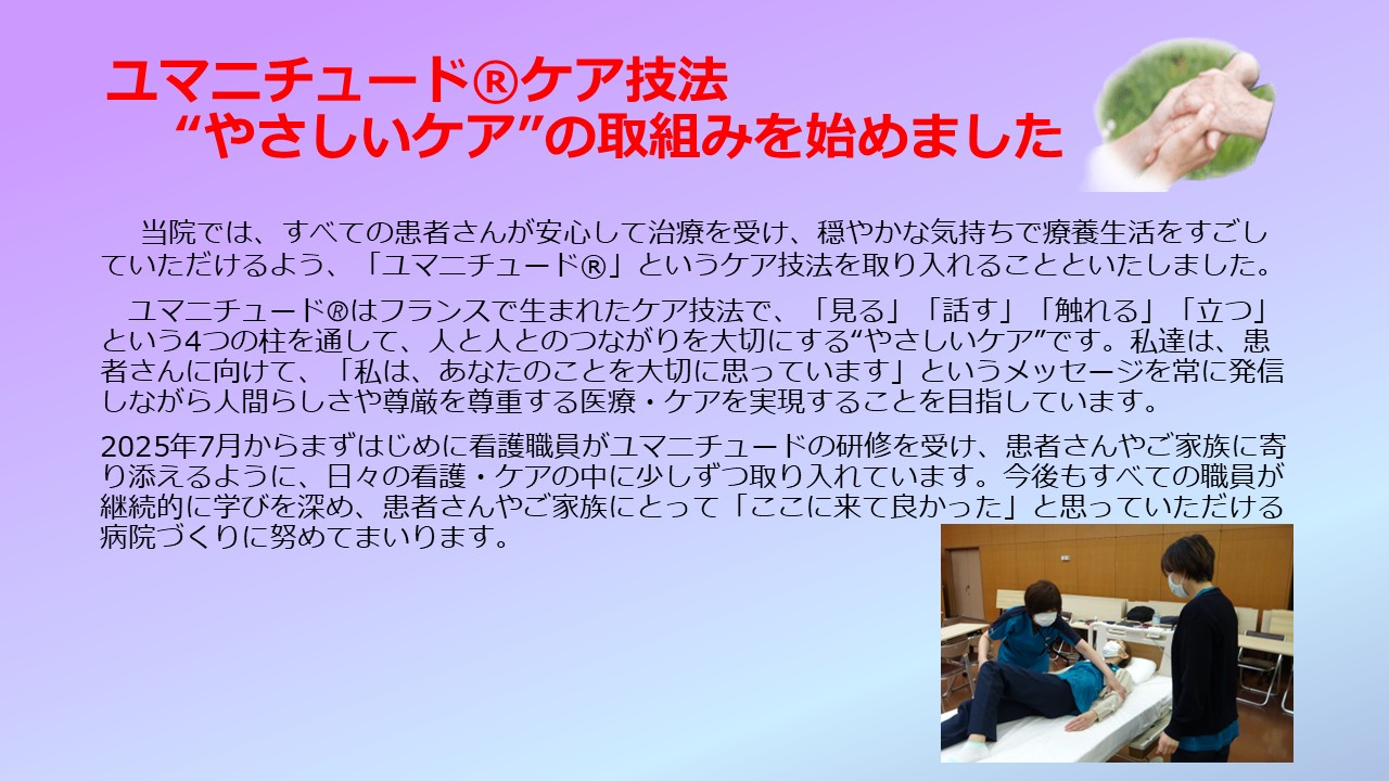 3.  >  ユマニチュード®ケア技法 “やさしいケア”の取組みを始めました