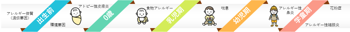 アレルギーになりやすい子どもが成長するにつれて、色々なアレルギー疾患に順番にかかっていく現象を指します。
