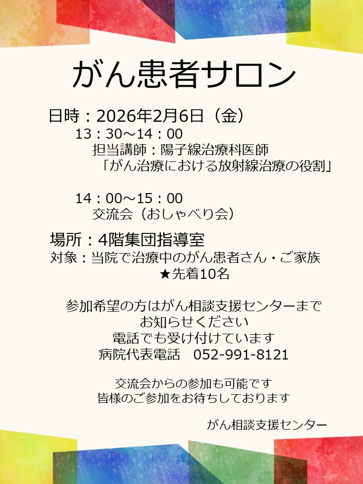3.  >  【2月6日(金)】「がん患者サロン」開催のお知らせ