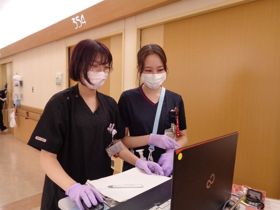 より良い看護を行うためPNSを導入し、ペアと情報共有を行い検温やケアを一緒に行っています!