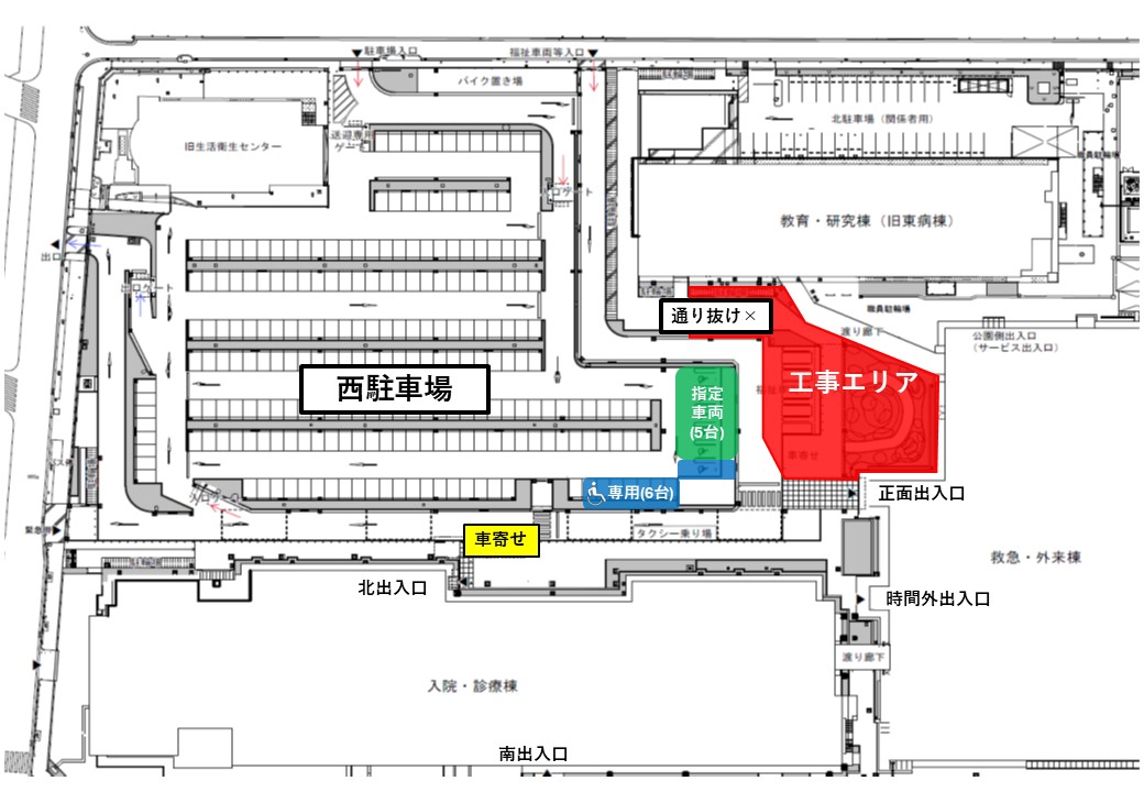 ご送迎の際は、入院・診療棟北出入口前の車寄せをご利用ください。