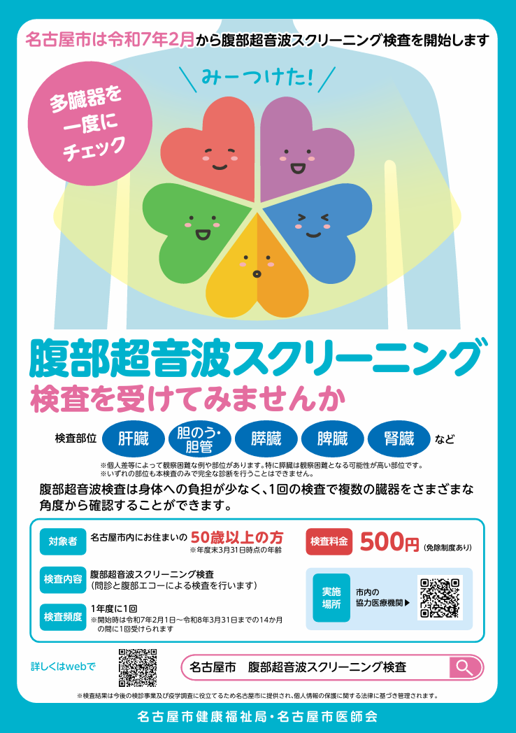 名古屋市腹部超音波スクリーニング検査ちらし