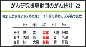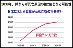 がんによる死亡のうち、膵がんは肺がんや消化器がんについで3番目に多いがんです。その数は増加し、2030年には第2位になると言われています。膵がんは治療が難しいがんですが、早期発見の膵がんの治療成績は良好です。