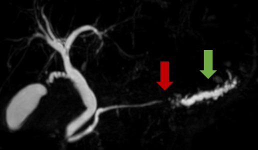 膵がんの早期発見には膵管の形態変化が有用と言われています。MRCPは、MRIを用いて「膵管」や「胆管」の形を詳しく調べる検査です。膵管のわずかな“狭さ”や“ふくらみ”を見つけることで、膵がんや膵のう胞など、早期の異常を見逃さずに発見できる可能性があります。